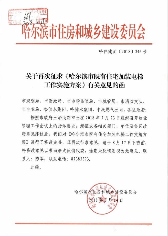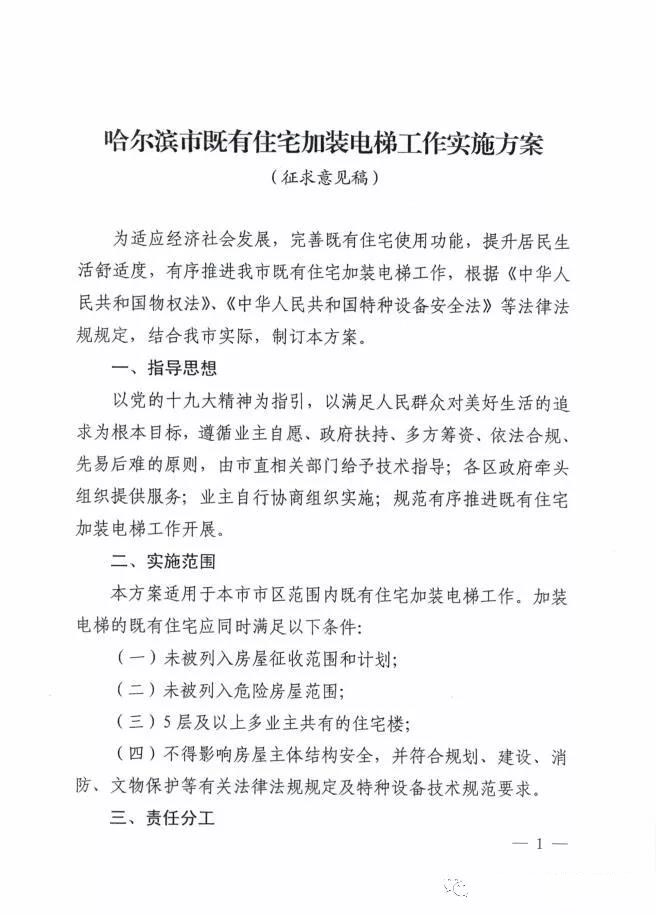 本站获悉,我省哈尔滨市日前由哈尔滨市住房和城乡建设委员会正式颁布了《哈尔滨市既有住宅加装火狐体育平台工作实施方案》,凡是符合要求的住宅楼,加装火狐体育平台政府每台补助15万元,如有加装意愿的单元抓紧时间申报。